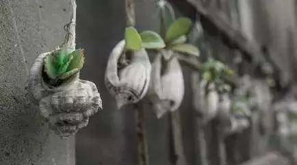 巧妙的用海螺的内部空间作为盛装植物的容器。