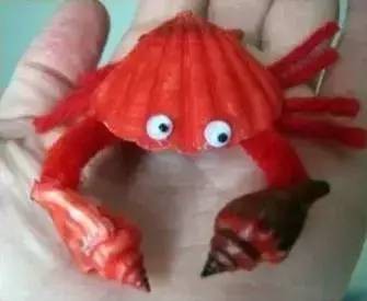 小螃蟹 | 贝壳上色,粘贴毛根作为腿部,找个小螺作为钳子就更神气啦~