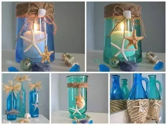 把没用的酒瓶与贝壳结合起来,瞬间变成家居时尚装饰物
