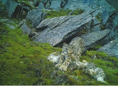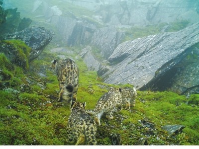 在卧龙保护区公布的新一轮雪豹数据回收成果中,三台红外线相机中分别发现了雪豹四口之家的身影。