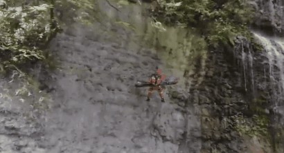 伤者被困在一处瀑布的顶端,此瀑布流经的悬崖坡面呈90°,与底部垂直落差约150米。