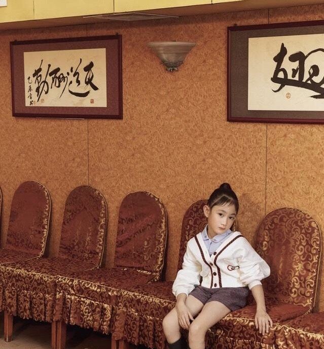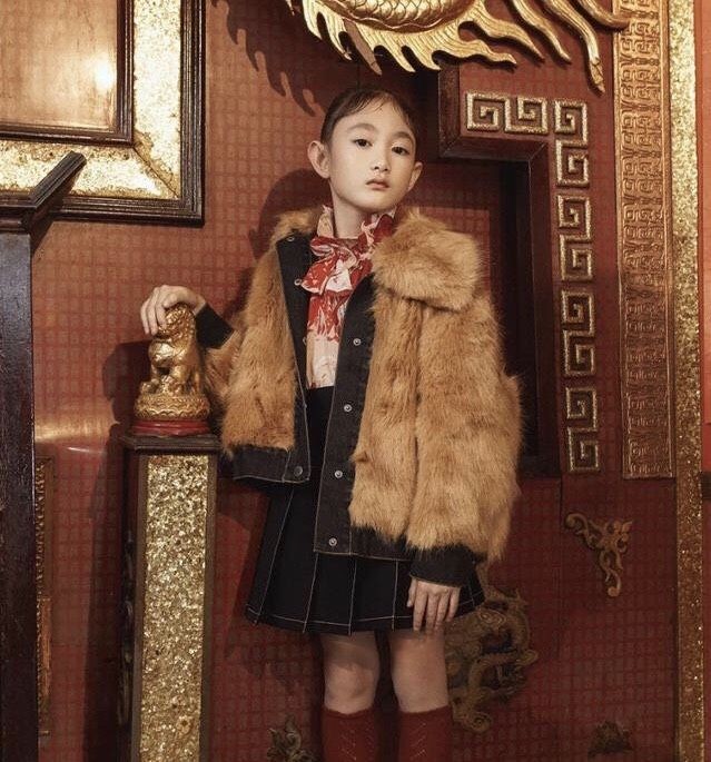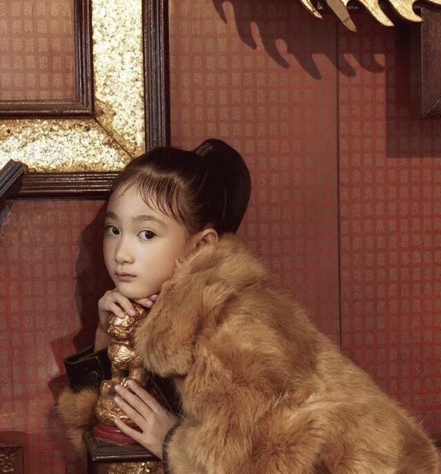 现在的奥莉已经8岁了,也开始慢慢变成了大女孩,参加了杂志封面的拍摄。照片中的奥莉,严肃中透露着高级,穿着仿皮草,有一丝丝的贵妇感。