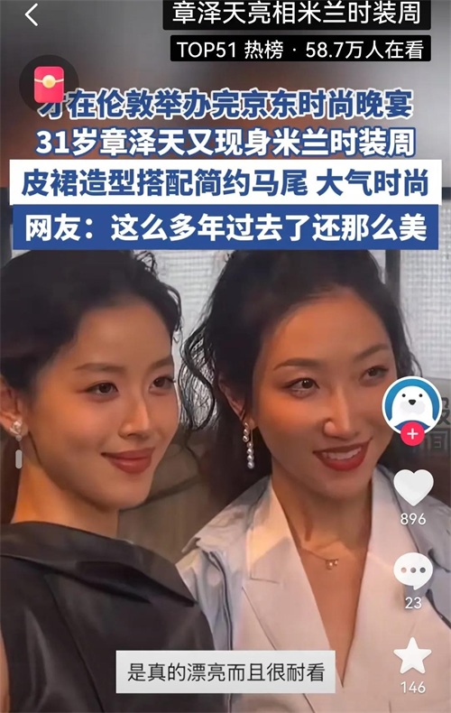 视频中,将满 31 岁的章泽天身着一身黑色皮裙搭配长靴,涂着鲜红的指甲,打扮利落时尚。她面对镜头笑意盈盈,状态超好,举手投足间散发着自信与从容。曾经那个手持奶茶、笑容甜美的“奶茶妹妹”,如今已然蜕变成一位优雅自信的成熟女性。刘冲更是发文称“把早起赶秀的我给美清醒了”,对章泽天的美貌赞不绝口。