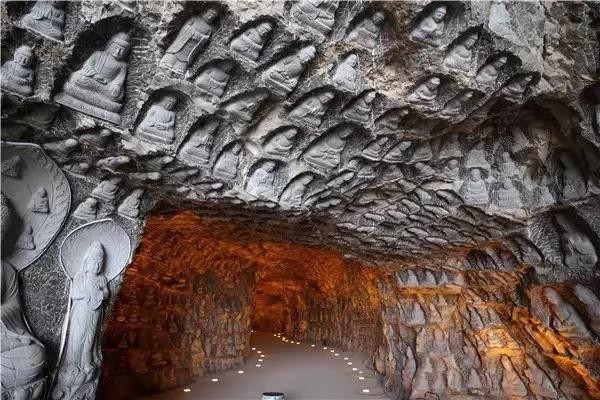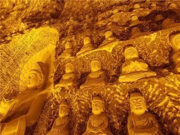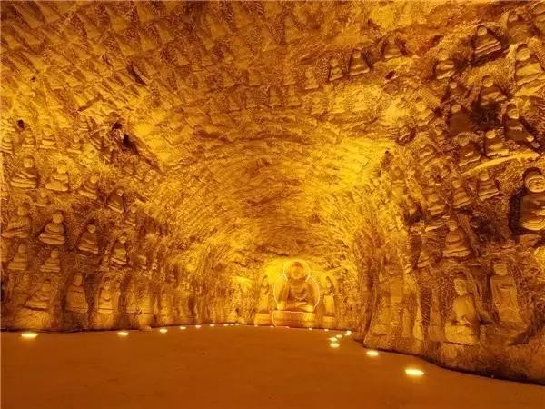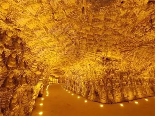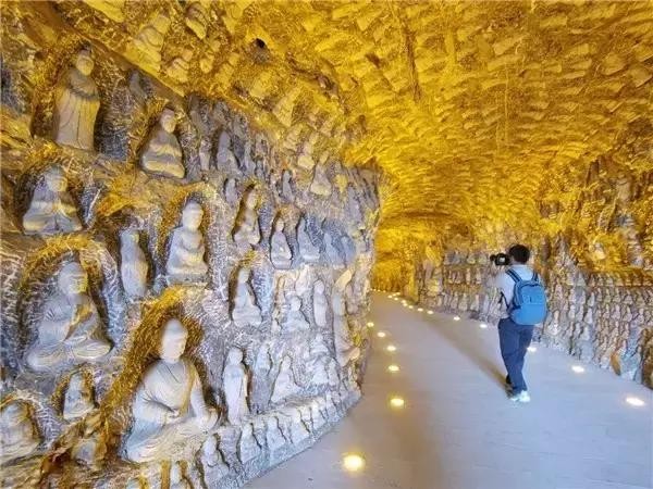 万佛洞采用最先进的声光电技术,使得洞内金光熠熠,气势恢宏,石像神态各异,精美绝伦。