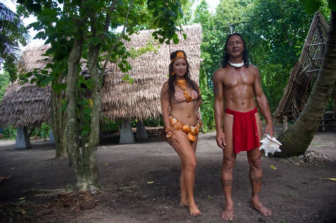 在关岛有一个裸身族群,男士只穿遮羞布,女士穿贝壳比基尼