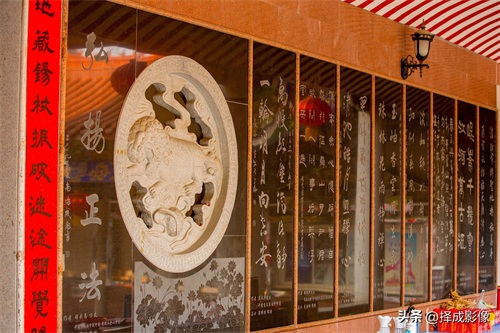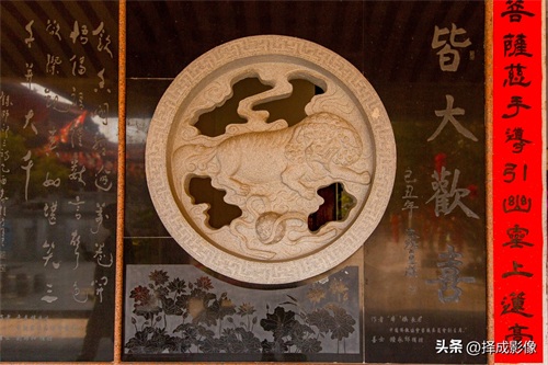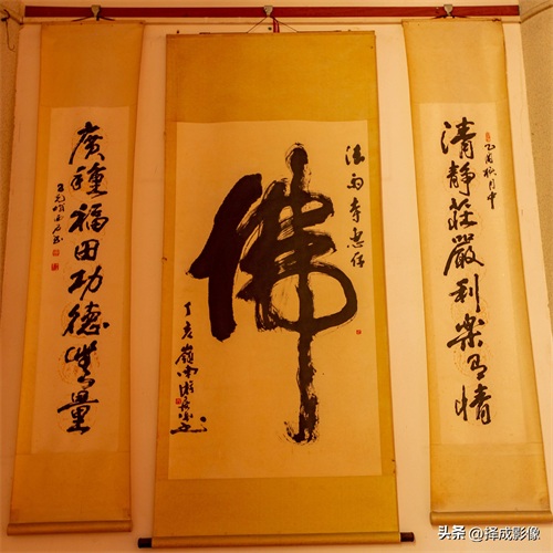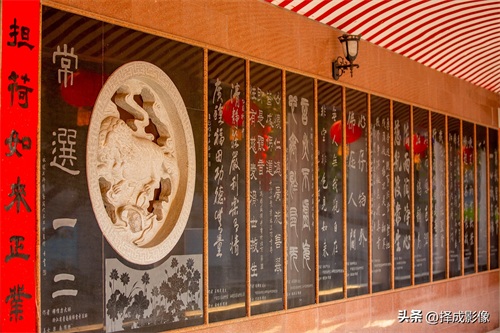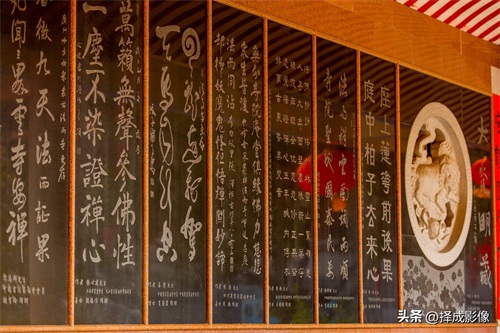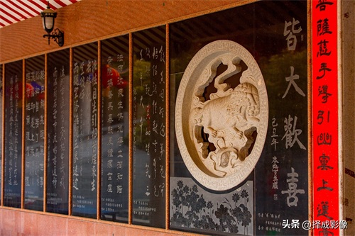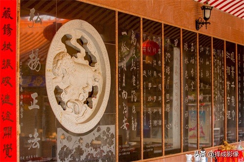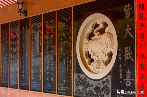 ▲在游览法雨寺之中,“读佛谒,赏书法”,让人凭添几分文化底蕴,尤其是赏读手书楹联更令人倍感书香之气迎面扑来。