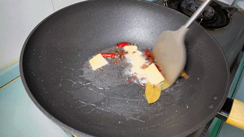 5.另起锅淋入少许植物油,油热下入准备好的各种辅料爆香。