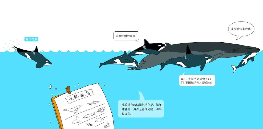 虎鲸捕食其它动物的图画