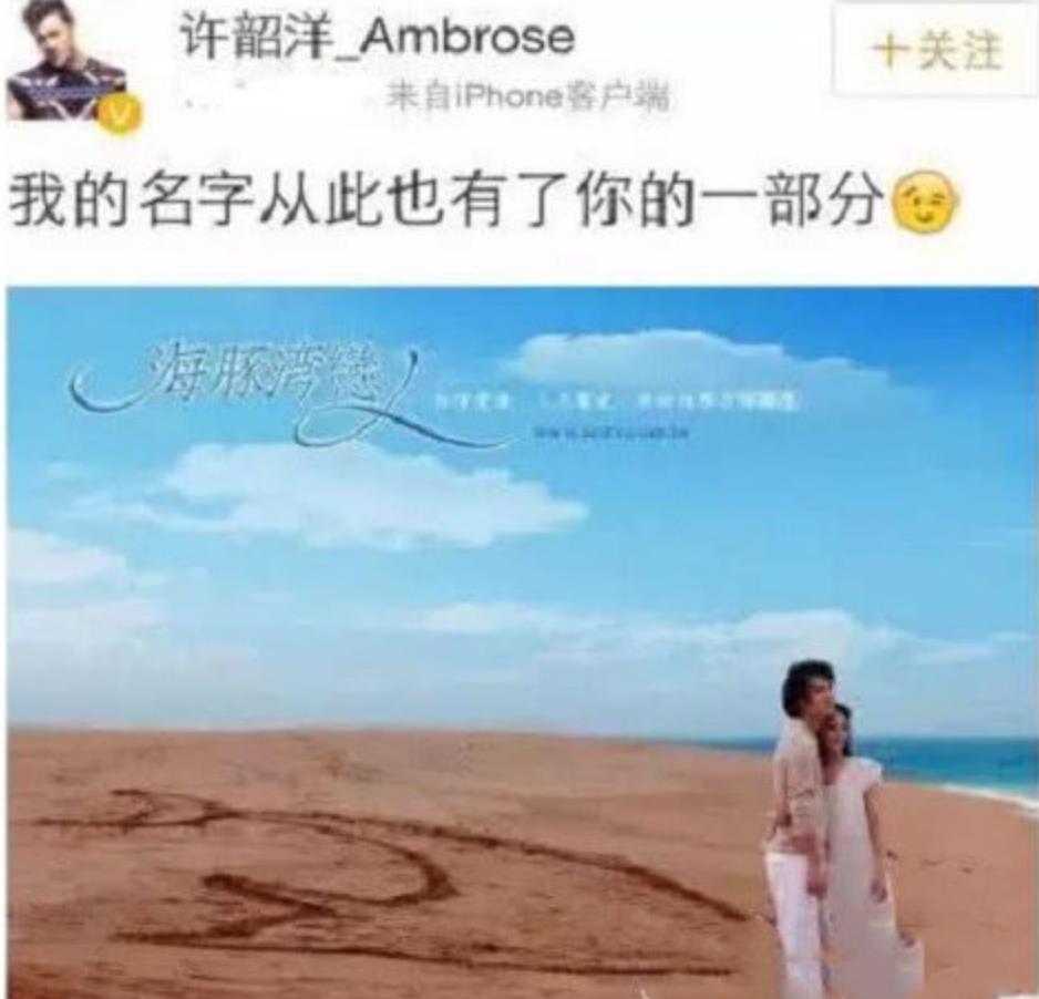 但是他似乎还是喜欢在炒绯闻上做文章,2014年的时候突然发了一张《海豚湾恋人》的剧照,还把个人社交平台账号名改成了“许韶洋”,配文疑似隔空表白张韶涵,结果被阿娇隔空回怼不要乱蹭。