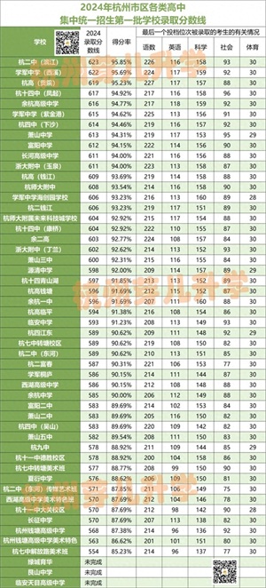 可以看出,杭州老“前八所重高”的格局已被打乱。近几年来,余杭高级中学、萧山中学、富阳中学等校面向主城区进行双向等额招生以来,成绩和口碑都不错,分数线也有所上升。