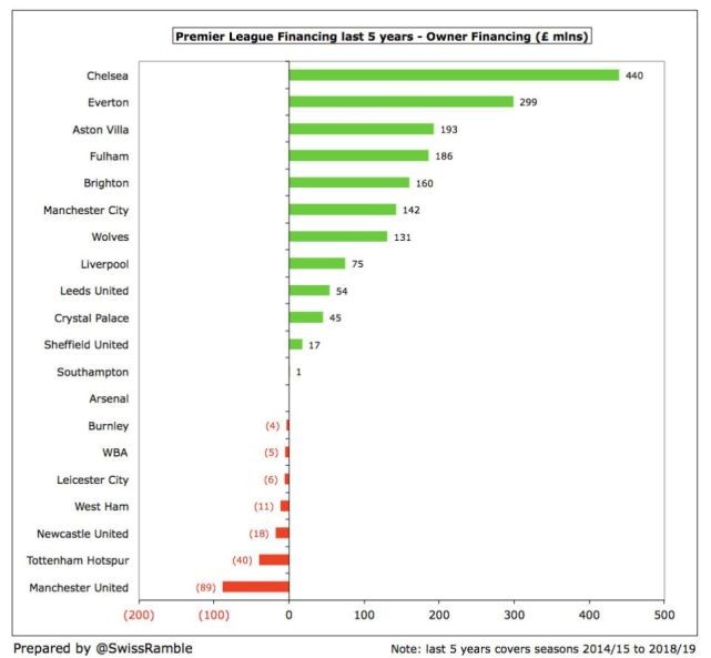 要知道,过去5年,英超有12家俱乐部老板的投入是正数,最多的是切尔西老板阿布,投入了4.4亿英镑。有7家俱乐部是老板不仅不出钱,还往自己腰包里塞钱,其中最多的就是格雷泽家族了——8900万股息。所以,曼联球迷才会如此憎恨格雷泽家族,强烈要求他们“out”。