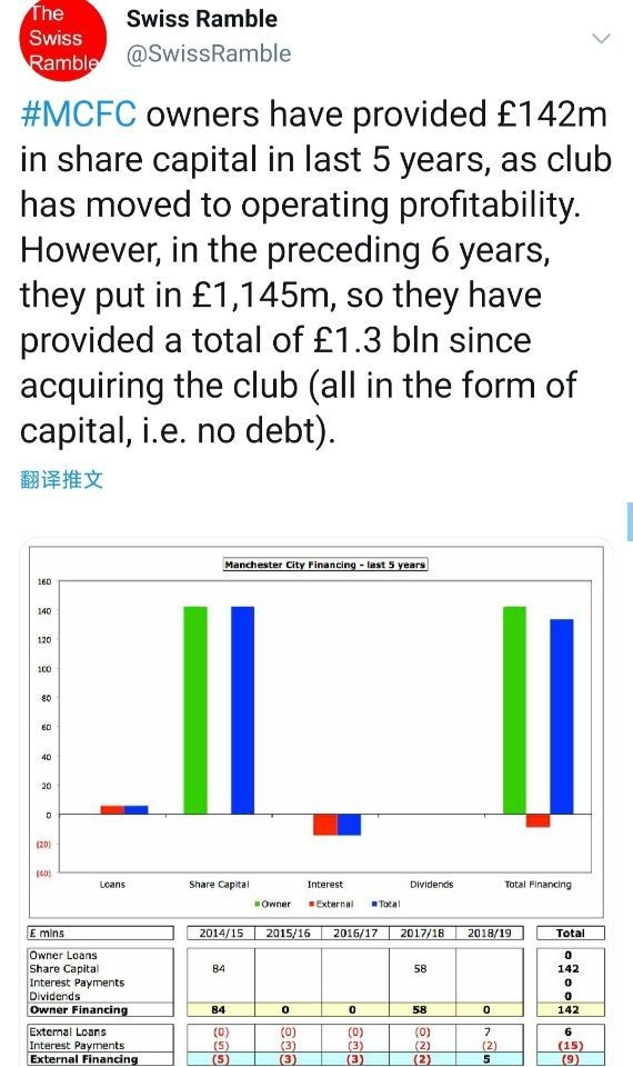 不比不知道。同城死敌曼城的老板们,对俱乐部是真的好,真的舍得投入。过去5年,酋长们以股份资本的方式给蓝月亮注资1.42亿英镑。再往前追溯6年,注资高达11.45亿英镑。也就是说,在曼苏尔收购曼城11年以来,一共投入了13亿英镑!而且全部是股份资本,不是债务,蓝月亮不像红魔那样负债累累!