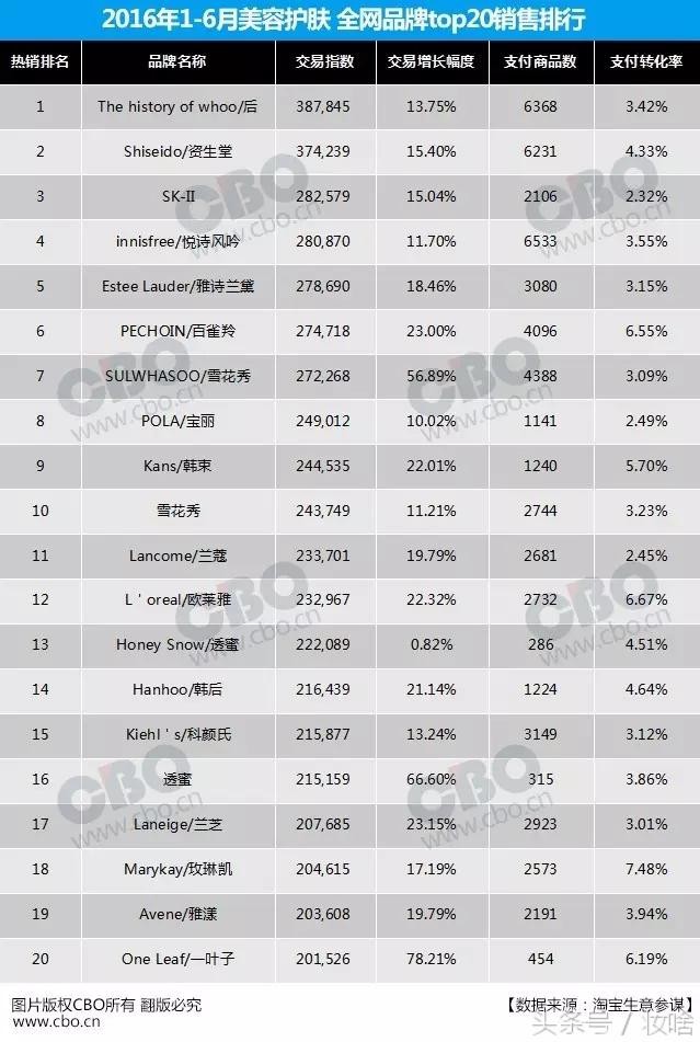 近日,淘宝生意参谋公布2016年1-6月美容护肤全网品牌TOP20榜单,看到榜单上的那些品牌,再看看自己的梳妆台。真的想说,榜单上的排名也有我的一份力啊!