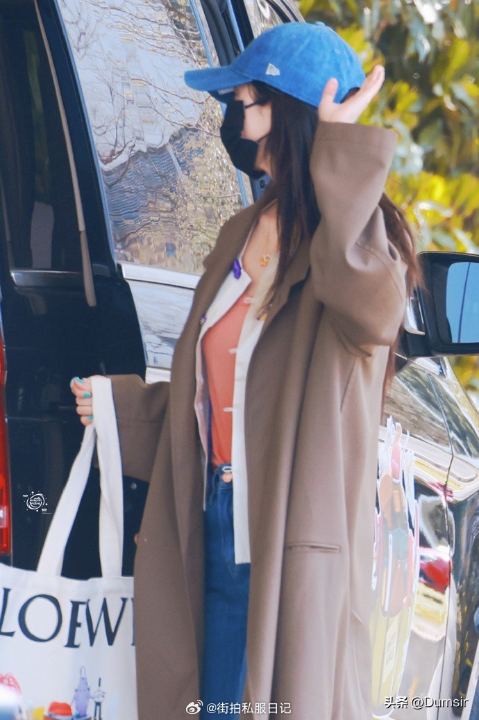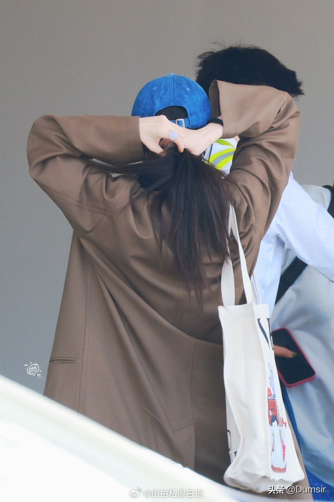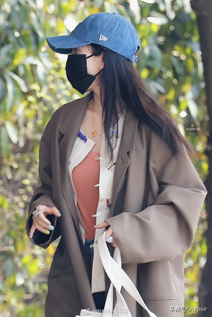 这身搭配和先前的风格又不一致,深卡其色的风衣个人非常喜欢,已经在好几身搭配中看到幂幂穿这件衣服,看来她也喜欢用它来搭配。罗意威的帆布口袋,牛仔裤+新中式的内搭,层次感叠加,街头休闲风十足。当然,还有这款她钟爱的棒球帽,一直都用来做各种搭配。