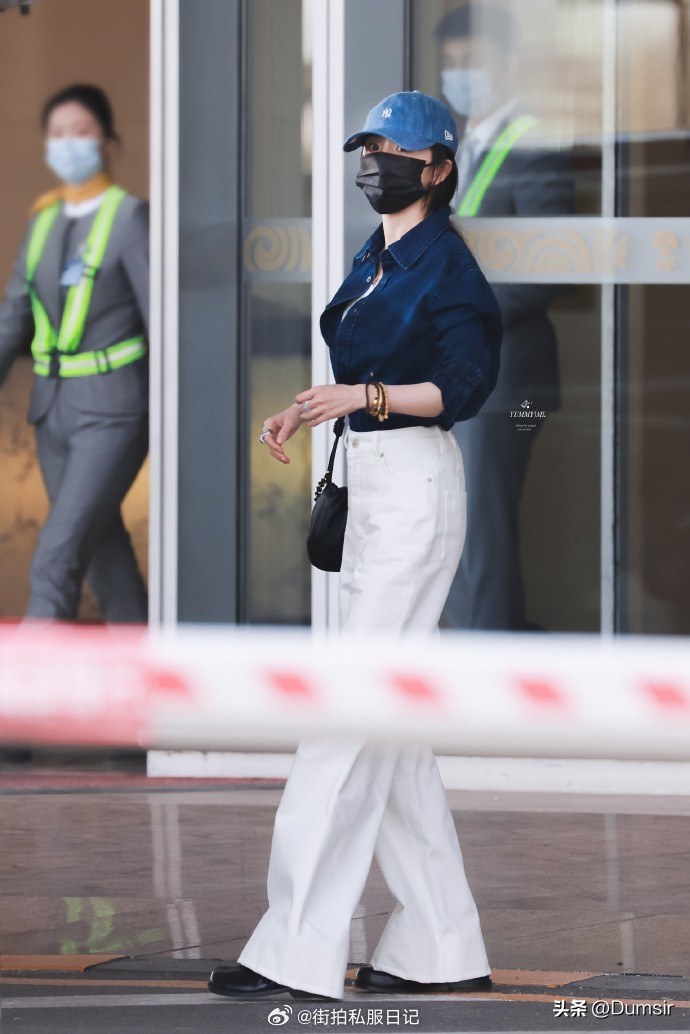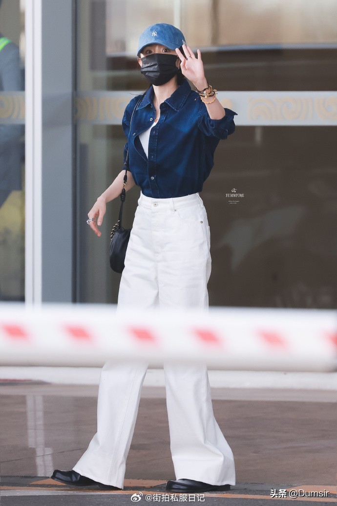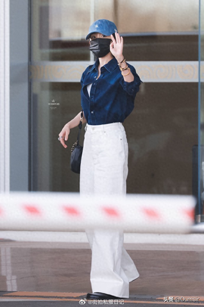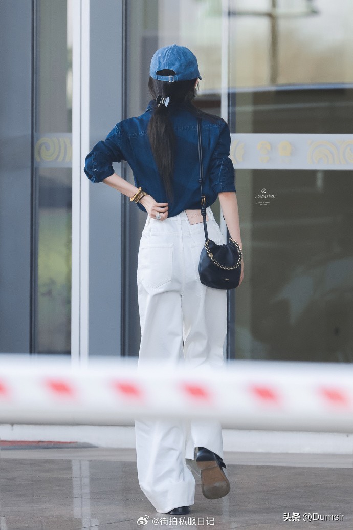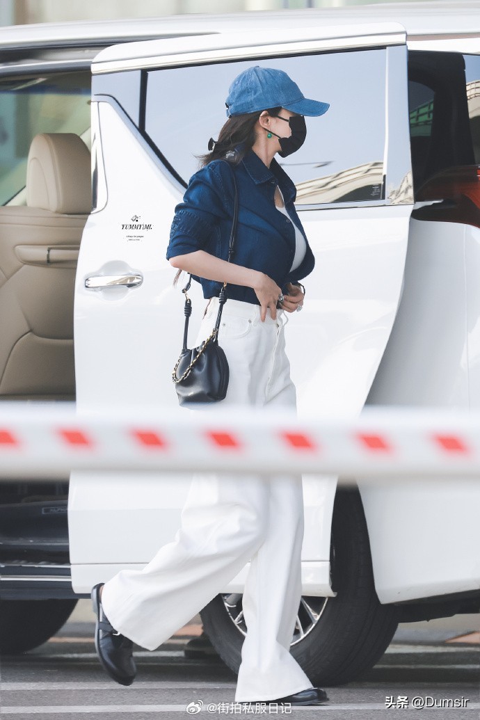 大幂幂最近的状态应该是非常不错,从国外时装周到罗意威的专场,又到最近出街在机场的照片。首先她应该很喜欢这顶牛仔的MLB的帽子,和牛仔上衣搭配起来正合适,白色的休闲阔腿裤搭配起来正好适合春天出街的需要。