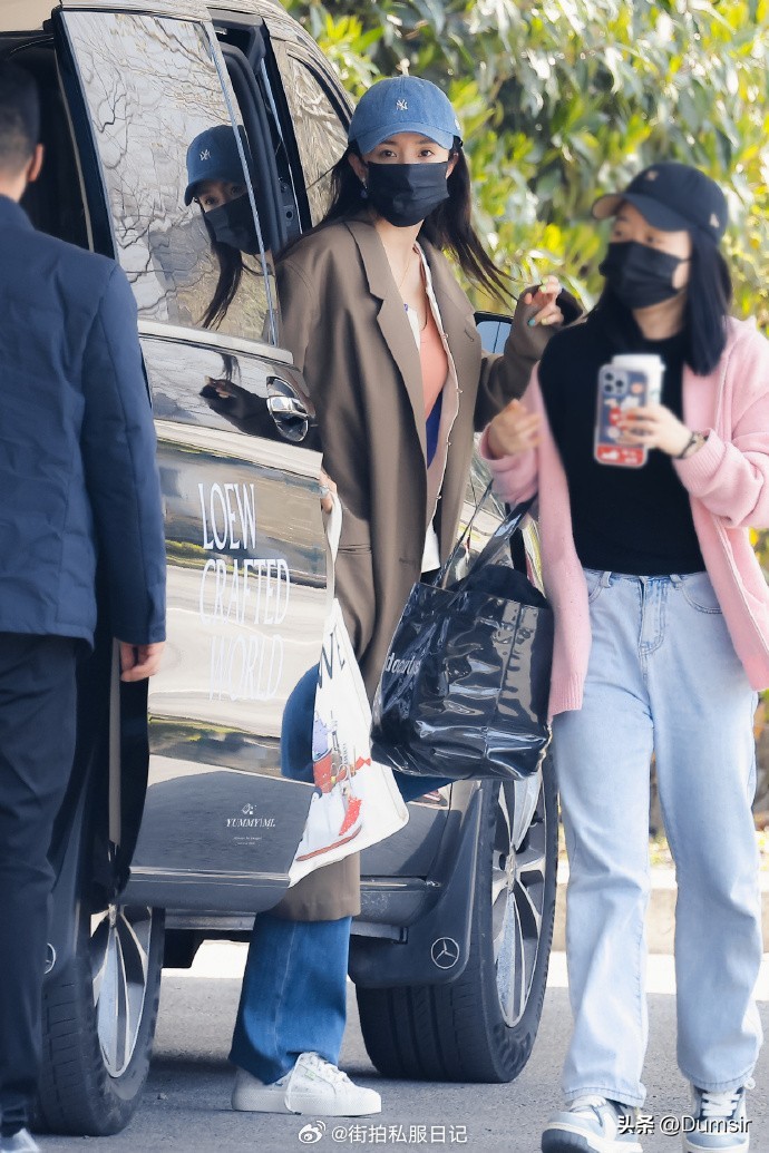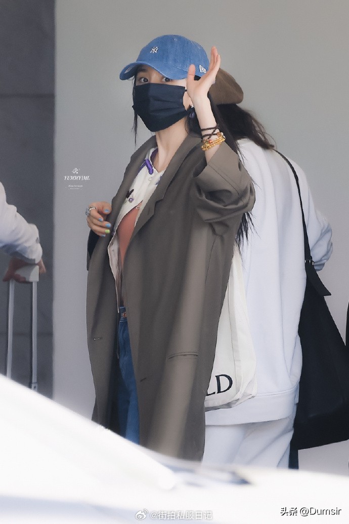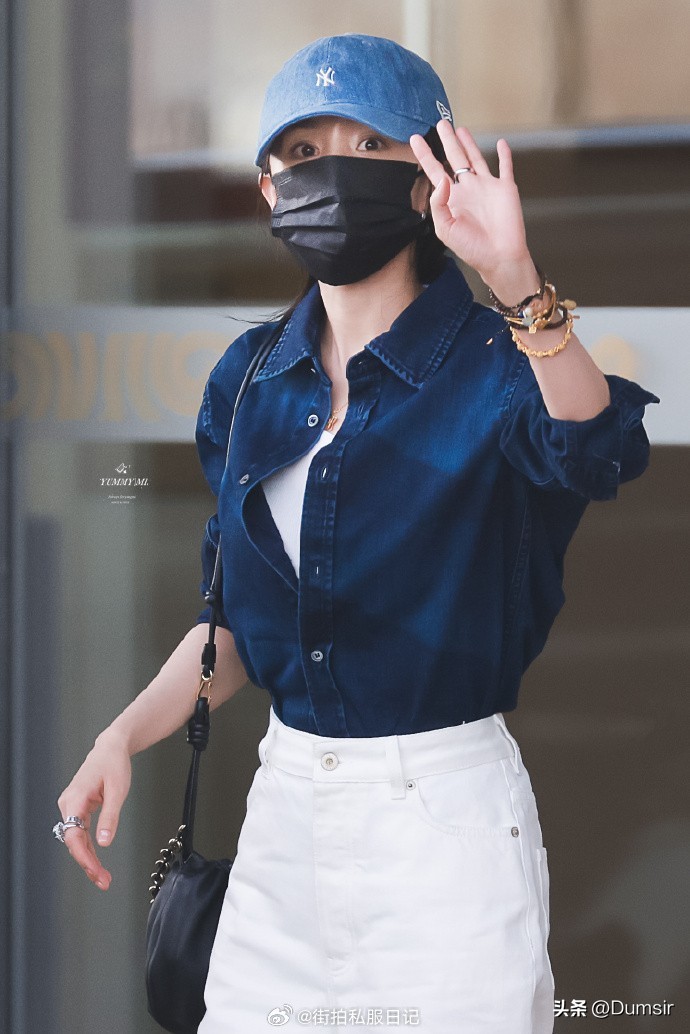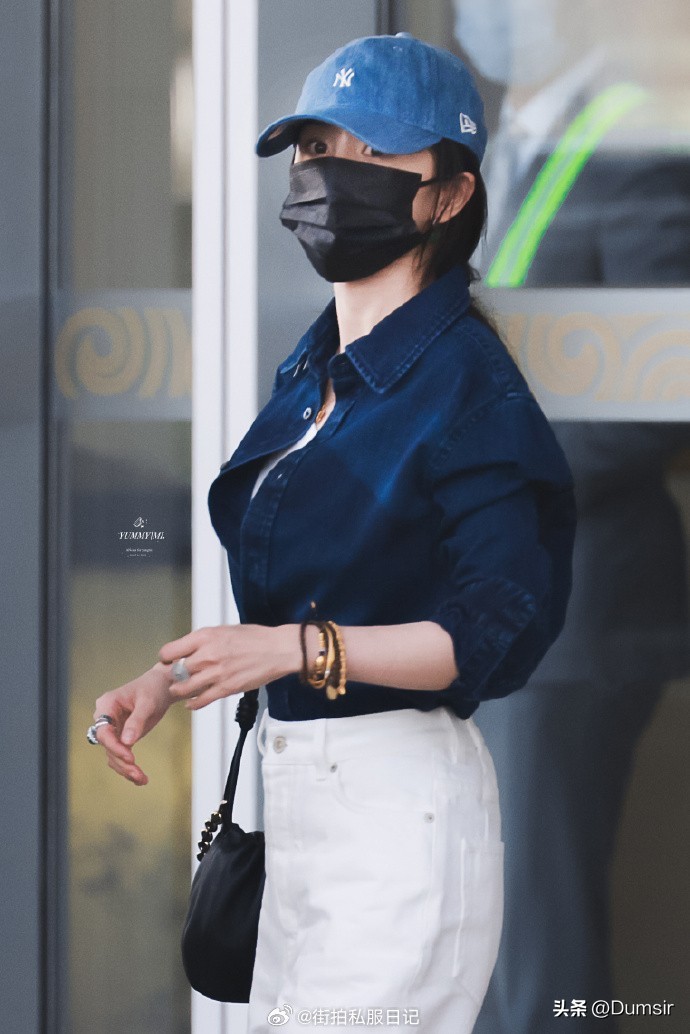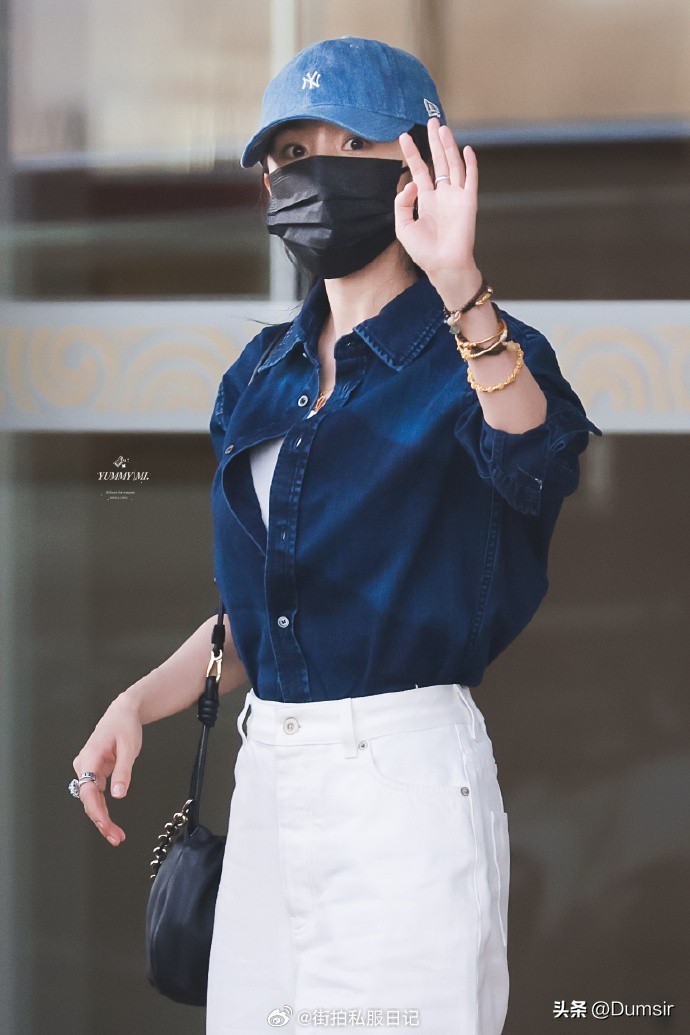 大幂幂最近的状态应该是非常不错,从国外时装周到罗意威的专场,又到最近出街在机场的照片。首先她应该很喜欢这顶牛仔的MLB的帽子,和牛仔上衣搭配起来正合适,白色的休闲阔腿裤搭配起来正好适合春天出街的需要。