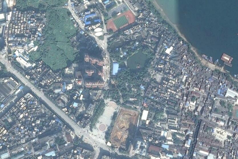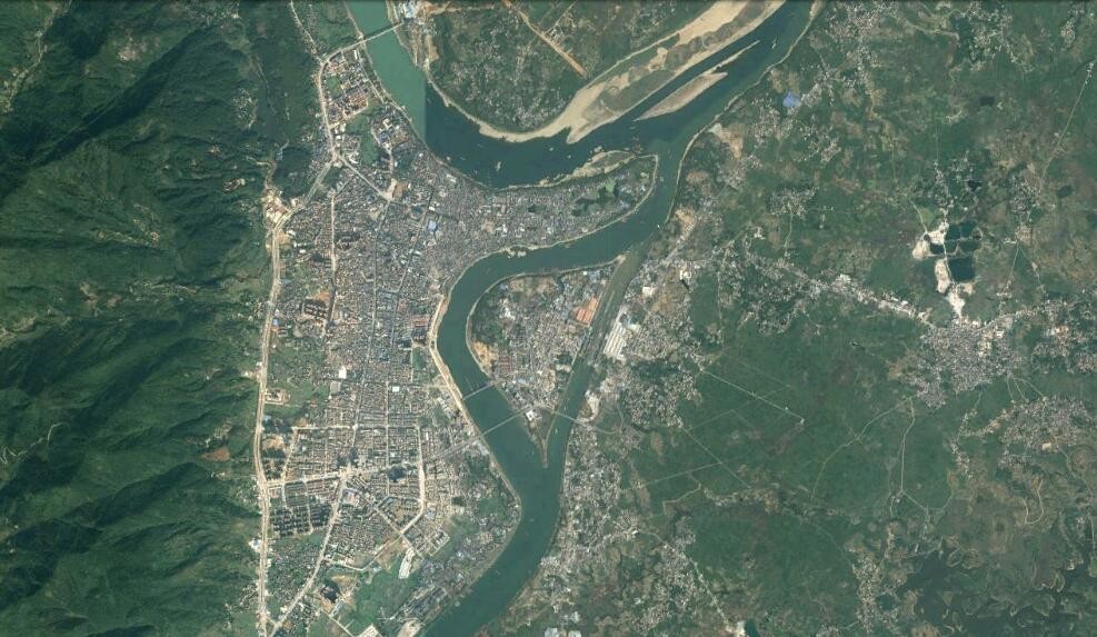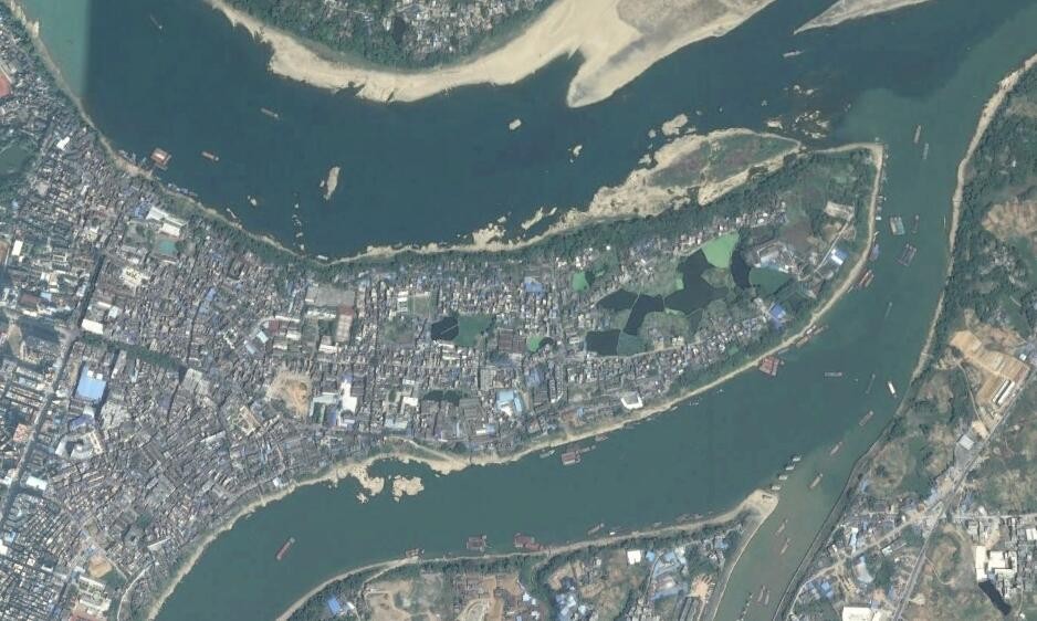 卫星上看广西桂平市:两条大江在此交汇,形成了半岛和岛屿