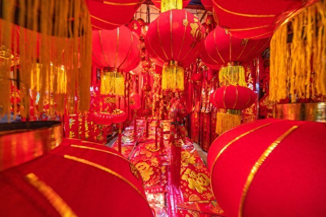 在除夕这天,人们会在家门口贴上春联和年画,以祈求来年好运和幸福。春联通常是对仗工整的对联,表达对家庭和生活的美好祝愿;年画则多为吉祥图案,色彩鲜艳,寓意着对来年的期盼和祝福。这一传统反映了中国人对美好生活的向往和追求。