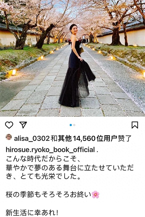 在照片的下面,广末凉子配文说道“处在这样一个时代,能够在豪华的舞台上展现自己的才华,让我感到非常光荣!”