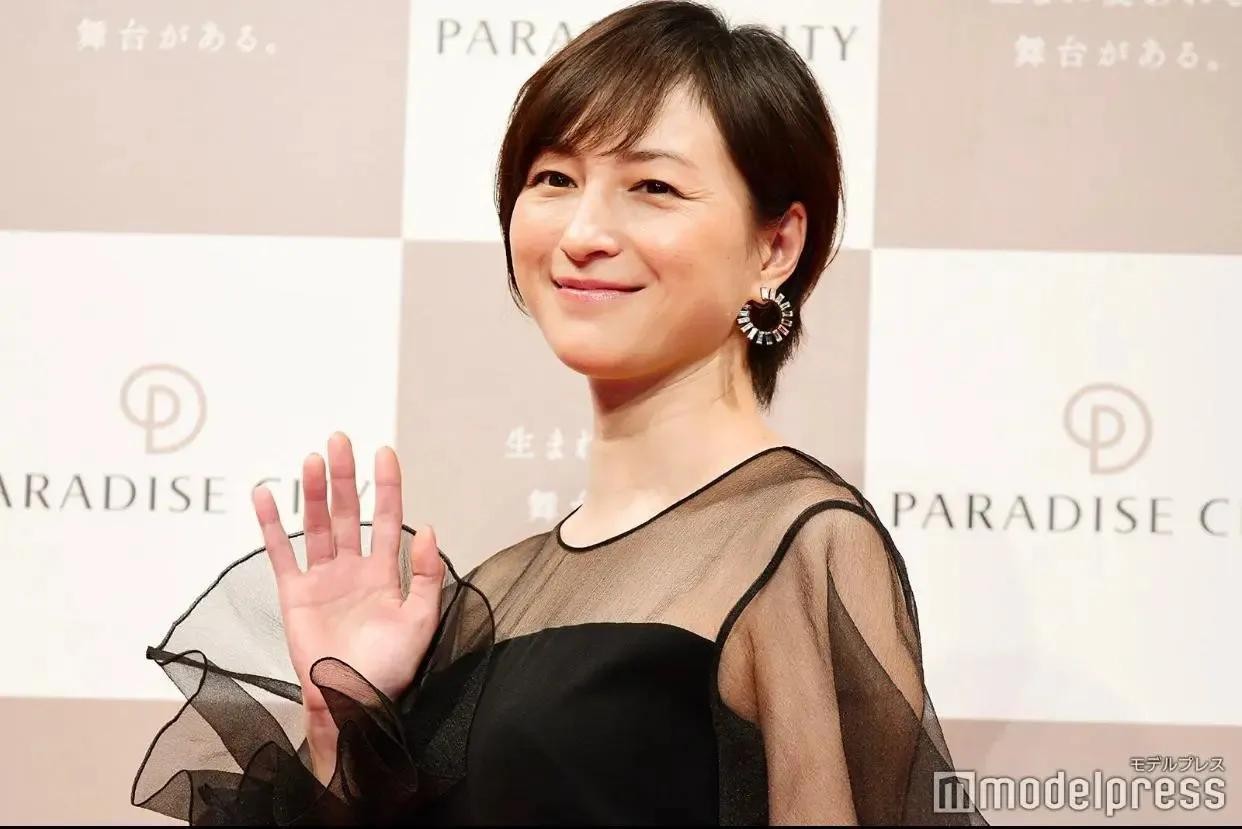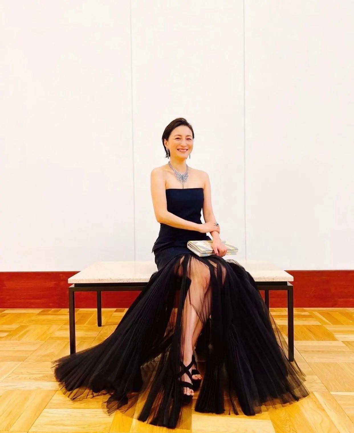 四十二岁广末凉子穿衣风格突变,香肩外露黑色透明长裙尽显性感