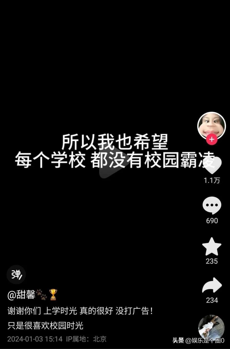 看到这里,大家似乎也明白了,11岁的甜馨是在为校园霸凌发声,因为近日郝劭文女儿刚刚在学校遭遇了霸凌,而且影响非常大,官方部门也已经开展调查。