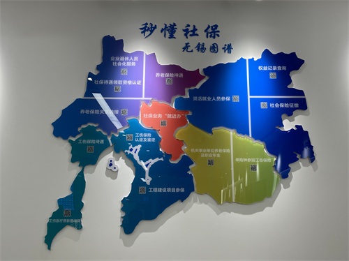 在服务大厅左边墙上,便是“秒懂社保”无锡图谱。图谱以无锡市区地图为模板,嵌入了主要社保业务的名称,并配有二维码。群众只需要扫码就可直接获取社保业务最新咨询和办理指南。图谱下方的长条桌上,还摆放有新出炉的社保“微幸福”明信片和宣传册。