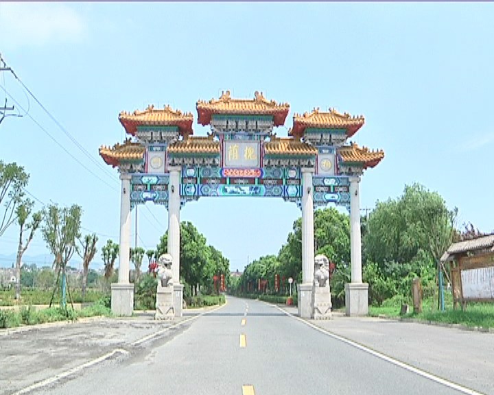 门廊、灯笼、指示牌,古色古香的文化气息扑面而来,而一条长长的直通村委会的柏油路,又显示出了它的现代化。