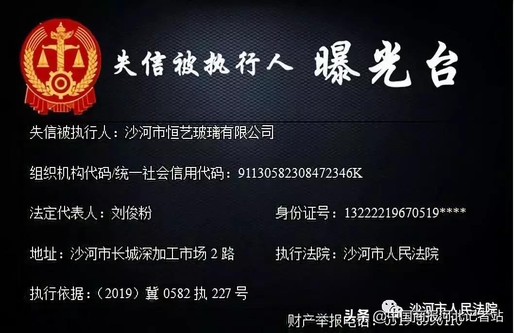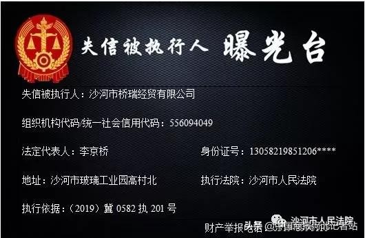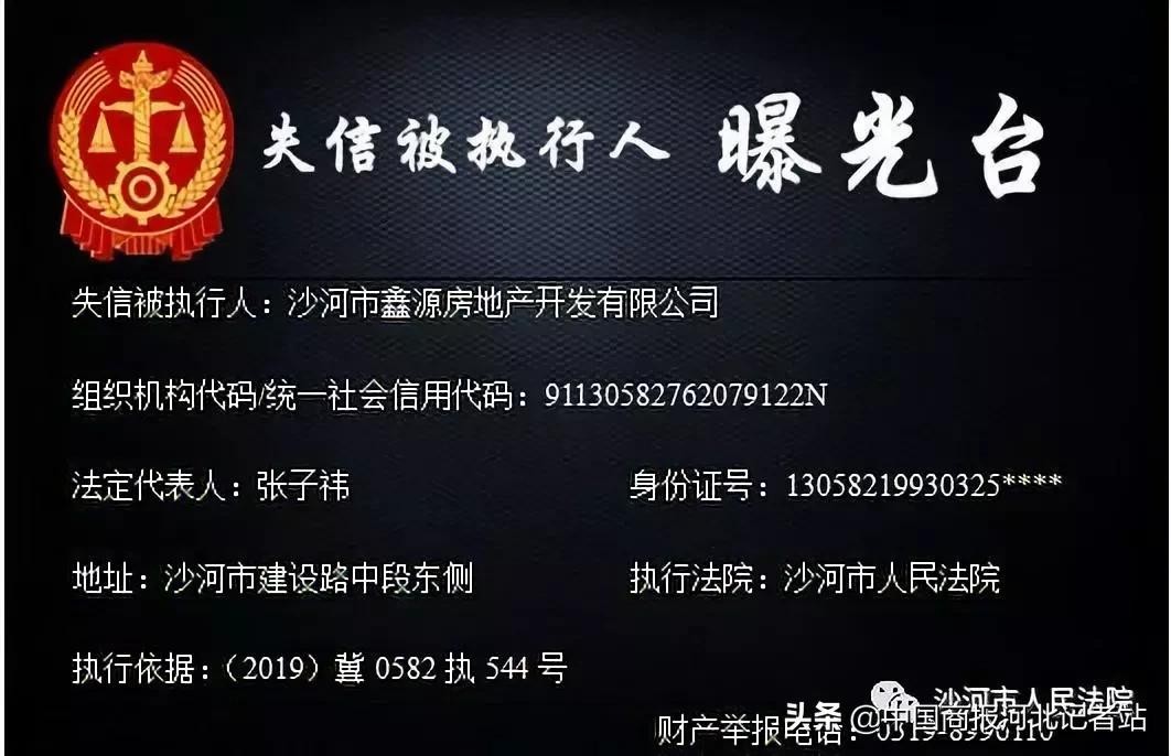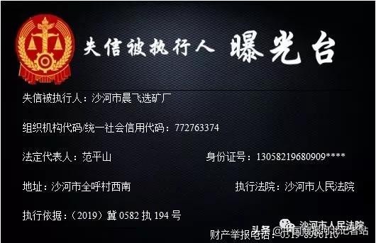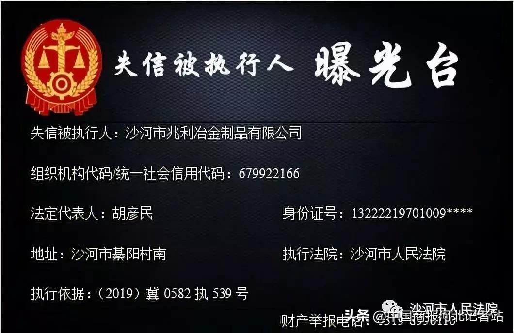 为加大失信惩戒力度,推动“法治沙河、诚信沙河”建设,根据《中华人民共和国民事诉讼法》、《最高人民法院关于公布失信被执行人名单信息的若干规定》、《最高人民法院关于限制被执行人高消费的若干规定》,沙河市人民法院决定公开失信被执行人信息,敦促失信被执行人履行判决义务。法院将对未能履行判决义务的失信被执行人采取搜查、拘留、罚款、追究拒执罪等多种强制措施,对赖账行为一追到底。财产举报电话:0319-8996110。