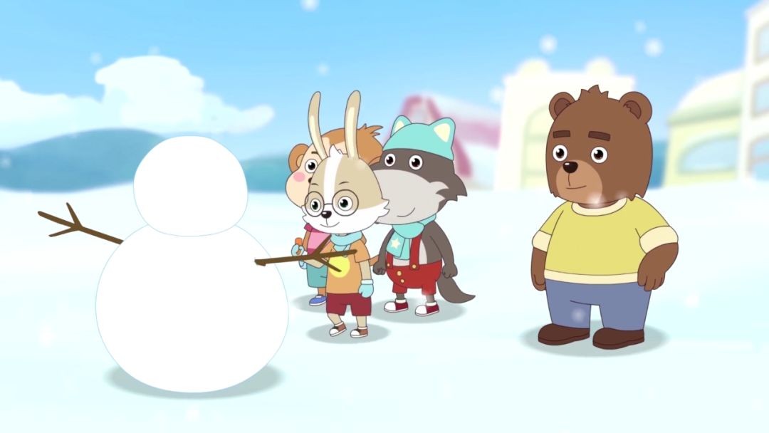 在《笨狼和他的小伙伴》动画中,善良可爱的笨狼总是被尖嘴狐狸这样调皮的小伙伴欺负,许多时候机智的聪明兔都会帮助笨狼同那些调皮的伙伴做斗争,然后找到一个大家都认可的方案,大家一起共享劳动成果。比如,在“笨狼和雪人”那一集中,与棕小熊一起的小伙伴滚了一颗大雪球,和笨狼一起的小伙伴则只做了颗小雪球,最后在聪明兔的调和之下,两个雪球合并起来堆成了一个大雪人,这就是“文明互鉴”的结果呀!