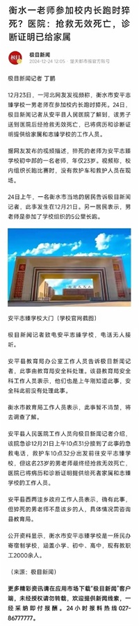 近日,一则令人痛心的消息在河北衡水市传开:一位年仅23岁的初中老师在参加学校组织的5公里长跑比赛时,不幸猝死。这一事件迅速在网络上发酵,引发了广泛关注和热议。
