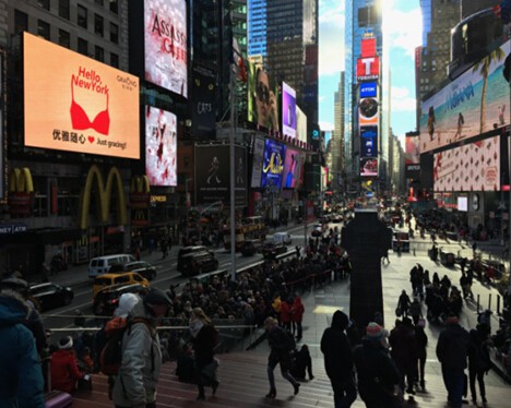 时报广场(Times Square)是美国纽约市曼哈顿最繁华的街区,也是全球人流量最大的商圈之一,它汇集海外高端媒体、金融机构的从业人员以及来自全世界各地的游客。年均游客流量4000万人次、人员流量1亿人次。