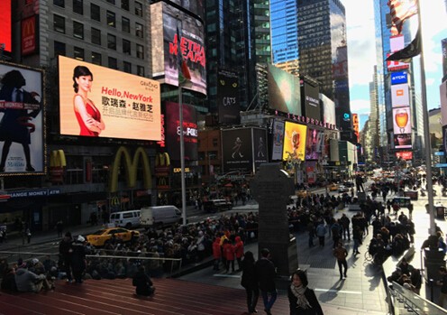 歌瑞森携赵雅芝登陆纽约时报广场,展示东方优雅风采