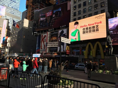 歌瑞森认为是“优雅是女人一生的事业,而事业让女人更优雅”。因此,歌瑞森邀请到“东方的奥黛丽·赫本”、“中国的优雅女神”赵雅芝实力担当品牌代言人。而此次携手赵雅芝登陆时报广场大屏,则标志着歌瑞森进入到了一个更高更广阔的品牌发展阶段。此番歌瑞森登陆纽约时报广场,不仅受到了国际媒体的广泛关注,也彰显出一个冉冉升起的卓越品牌的国际视野和全球价值。