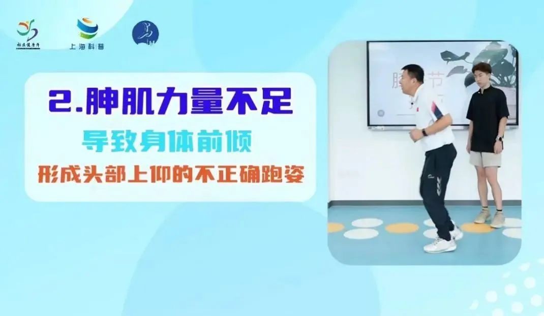 伸肌力量不足:导致身体前倾,形成头部上仰的不正确跑姿。