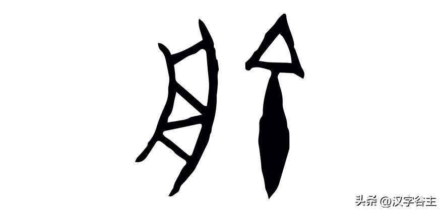 在甲骨文、金文图形中为尖顶锐器之形,