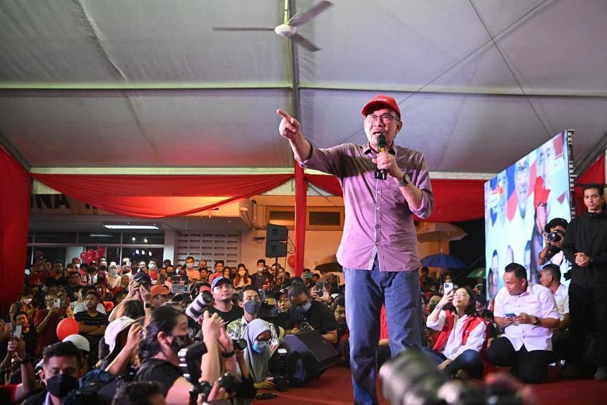 11月15日,希望联盟在雪兰莪州举行竞选集会,安瓦尔向选民发表讲话。