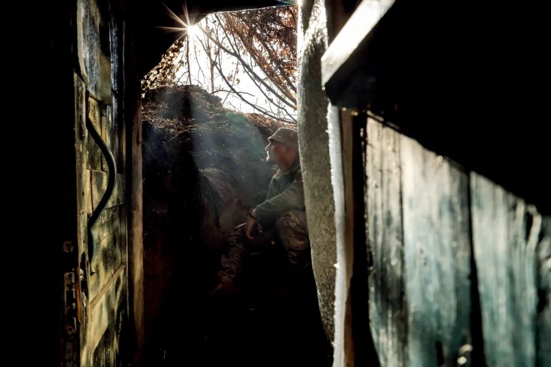 2024年10月23日,顿涅茨克地区恰索夫亚尔,乌克兰第24独立机械化旅的士兵在一处阵地中休息。