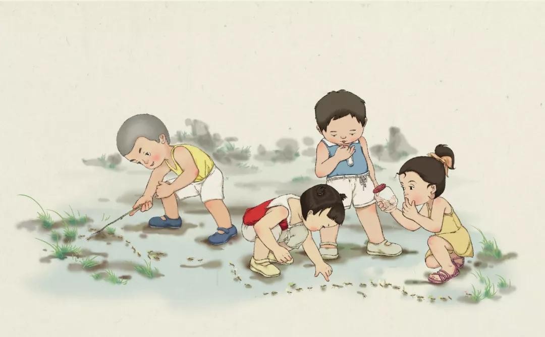 这不,夏天来了,大人们都忙起来了又是耕田又是织麻的,小孩子也不懂大人为什么会这么忙,就自己给自己找些乐子。