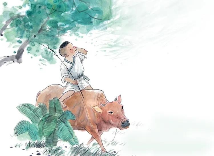 牧童骑着牛远远地经过山村,他把短笛吹得响亮,隔着田陇都能听到!真是无忧无虑啊!