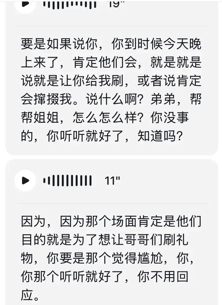 事情发生在一个语音直播间。主播声音温柔,语气甜美,林阳在那个只有十几人的小直播间里刷了80多块的礼物,很快就引起了对方的注意。下播后,主播主动跟他私信,聊天截图中,两人互动频繁、话语亲密。几天后,女孩开始倾诉烦恼,说公司给她布置了直播任务,要她“去找大哥要礼物”。不过她又反复安慰林阳,“你听听就好,不用当真”。
