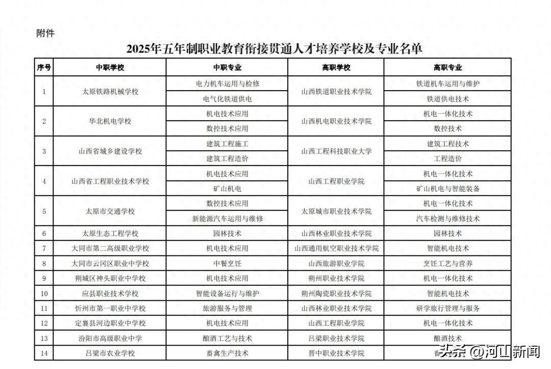 山西23所中职学校试点五年制贯通人才培养→ 附学校及专业名单