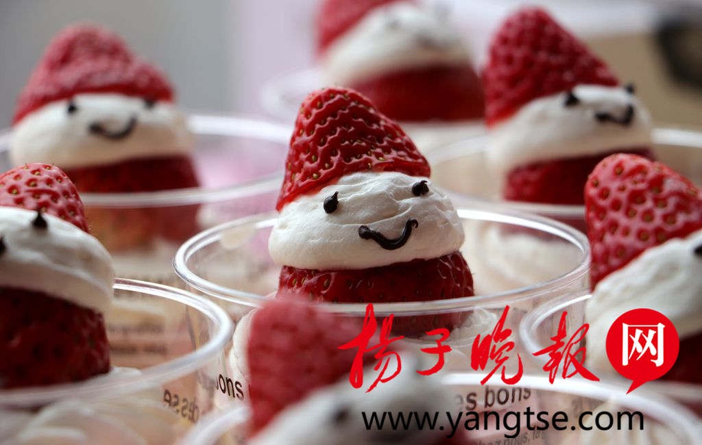 用草莓+奶油制成的“圣诞老人”,草莓+水果做成的创意果品,草莓+玩偶搭配成的文创产品……从吃的喝的到玩的用的,一件件具有“草莓”元素的创意产品,让人目不暇接。其中,最吸引小朋友的莫过于草莓创意甜品区了。在甜品师傅们的巧手制作下,草莓和奶油碰撞出了火花。别致的造型,香甜的味道,馋的小朋友们挪不开脚步。