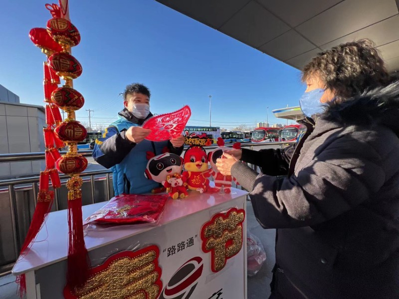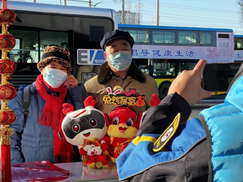 活动现场设置了写“福”字、画兔爷、剪窗花等趣味环节,邀请了有书法特长的公交职工在站台上写下一幅幅春联、一张张福字送给乘客们,不仅让广大乘客带着“福气”欢欢喜喜地迎接新春,更寄托了北京公交人对广大乘客们最衷心的新年祝福。公交职工还邀请乘客与北京公交吉祥物“路路”兔年限定玩偶合影留念。乘客王女士表示,在出行路上能收到手写的福字和春联感觉很惊喜、很开心,能把“福”带回家传递给家人感到很幸福,新的一年祝愿大家越来越好。