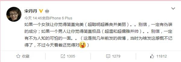 宋丹丹发微博称完美的人都有伪装成分,网友:暗讽林志玲?