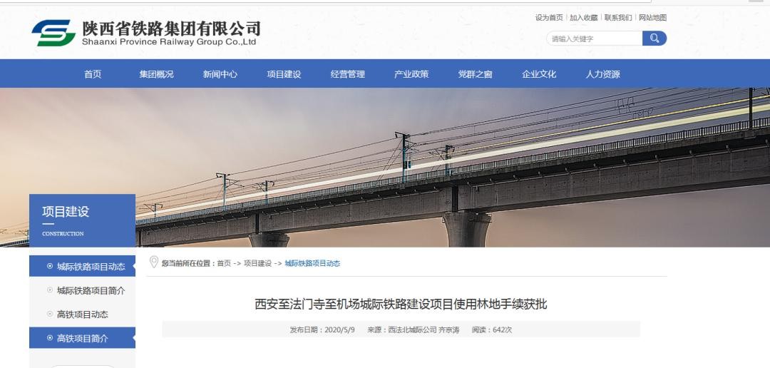 陕西省林业局以《使用林地审核同意书》对西安至法门寺至机场城际铁路建设项目使用林地予以批复。