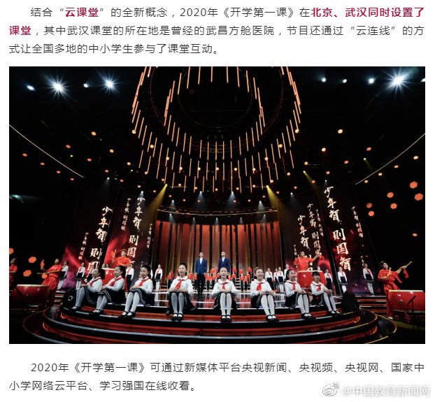 2020年《开学第一课》9月1日正式播出,钟南山携手“抗疫英雄”开讲“少年强,中国强”