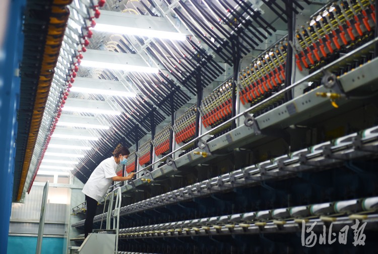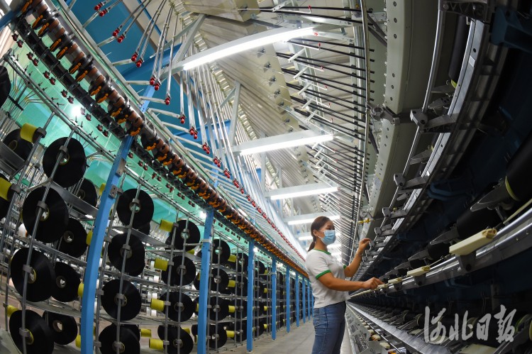 9月28日,位于邢台市南和区的河北汐恒纤维有限公司工人在自动化生产线巡检。