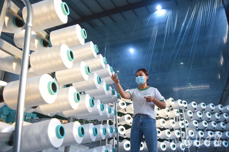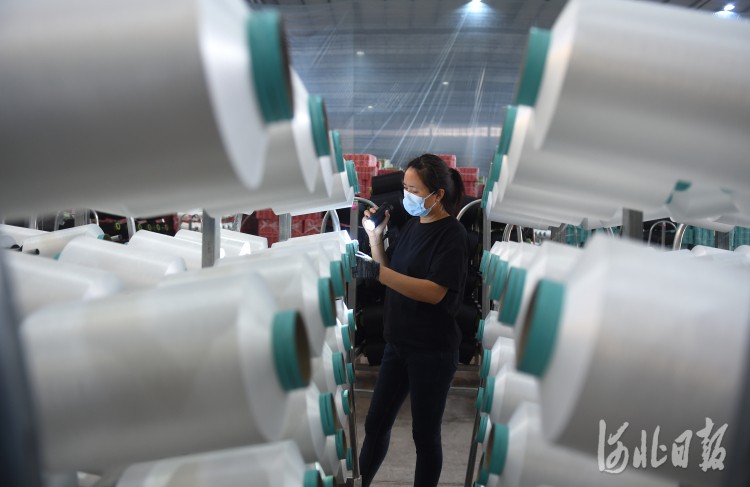 邢台市南和区的河北汐恒纤维有限公司工人在检验产品质量。