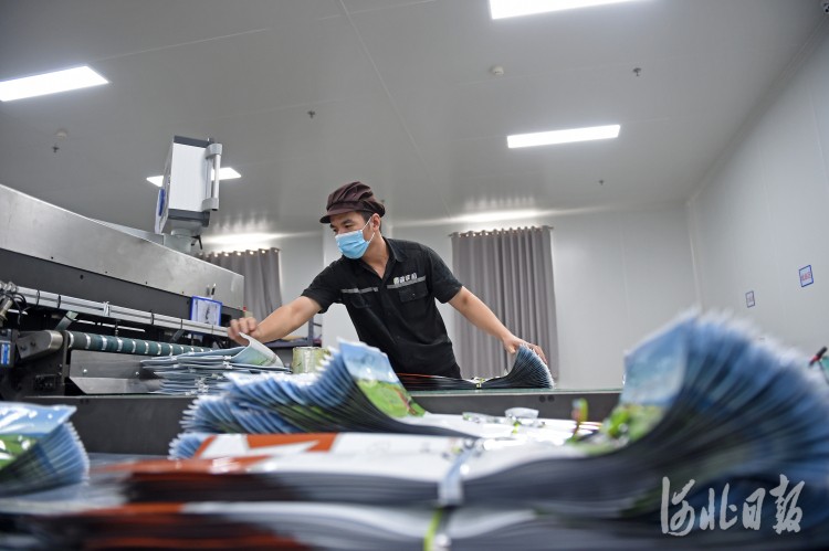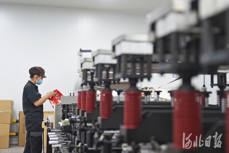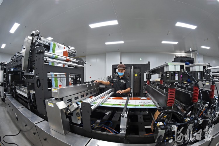 邢台市南和区河北智优捷新材料科技有限公司工人在自动化制袋车间巡检。