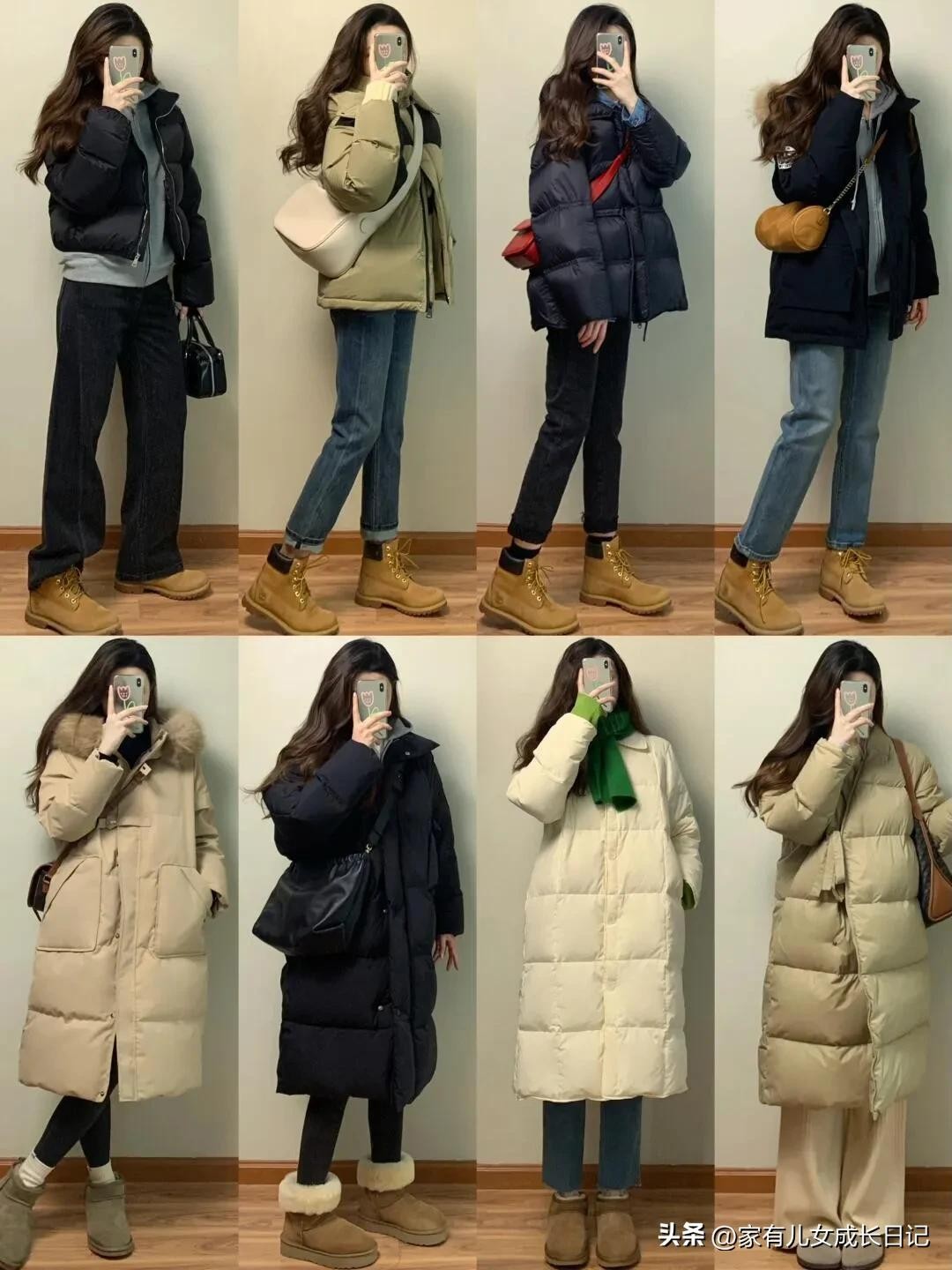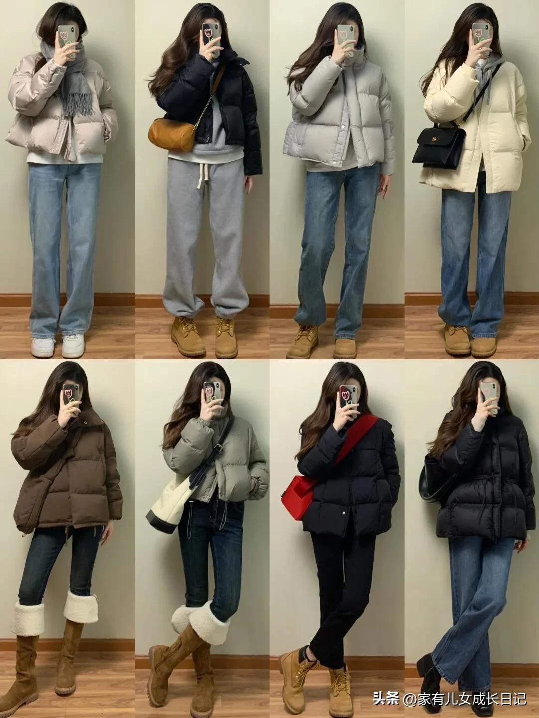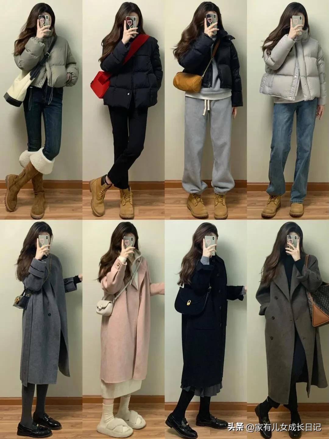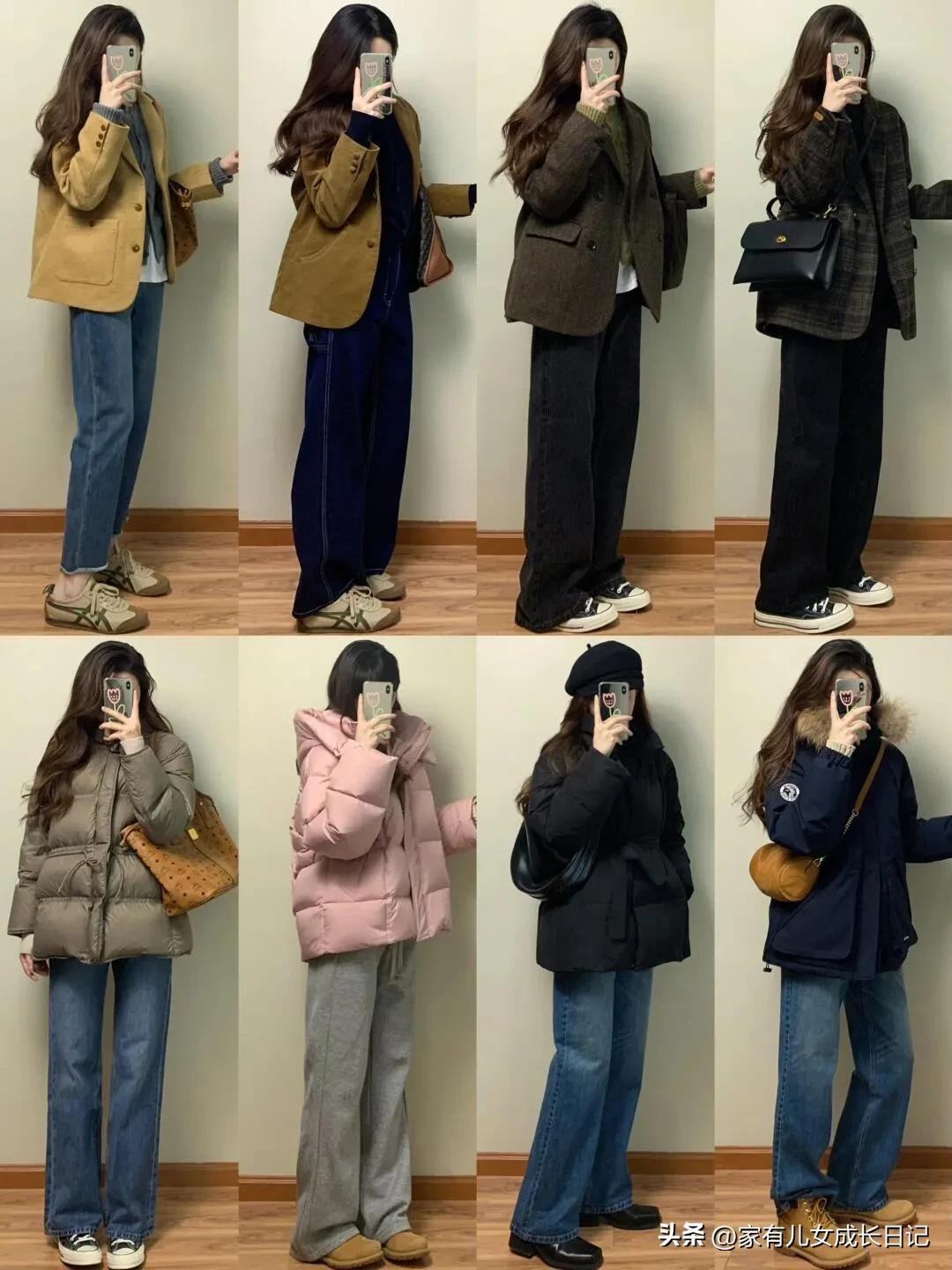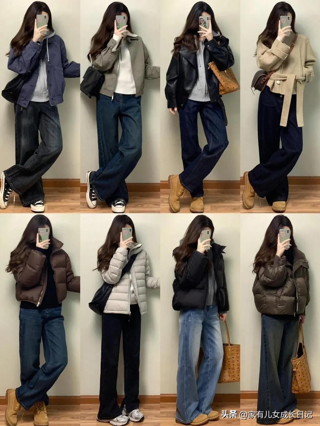 时尚女人128套穿搭,咖、灰色系毛呢大衣+牛仔裤,优雅通勤高级感